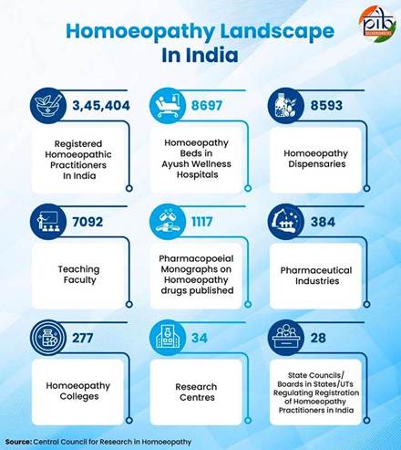 India has 3.45 lakh registered doctors, 8,593 dispensaries, 277 institutions, and 34 research centres.
